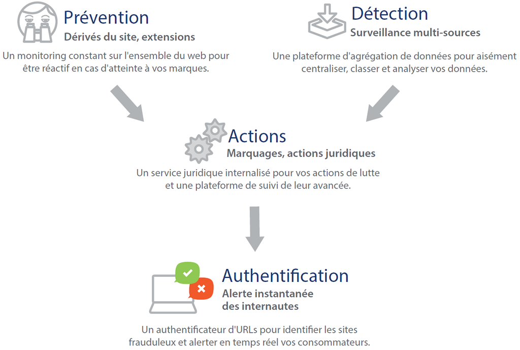 - Une solution de prévention unique contre le phishing, le cybersquatting et la contrefaçon